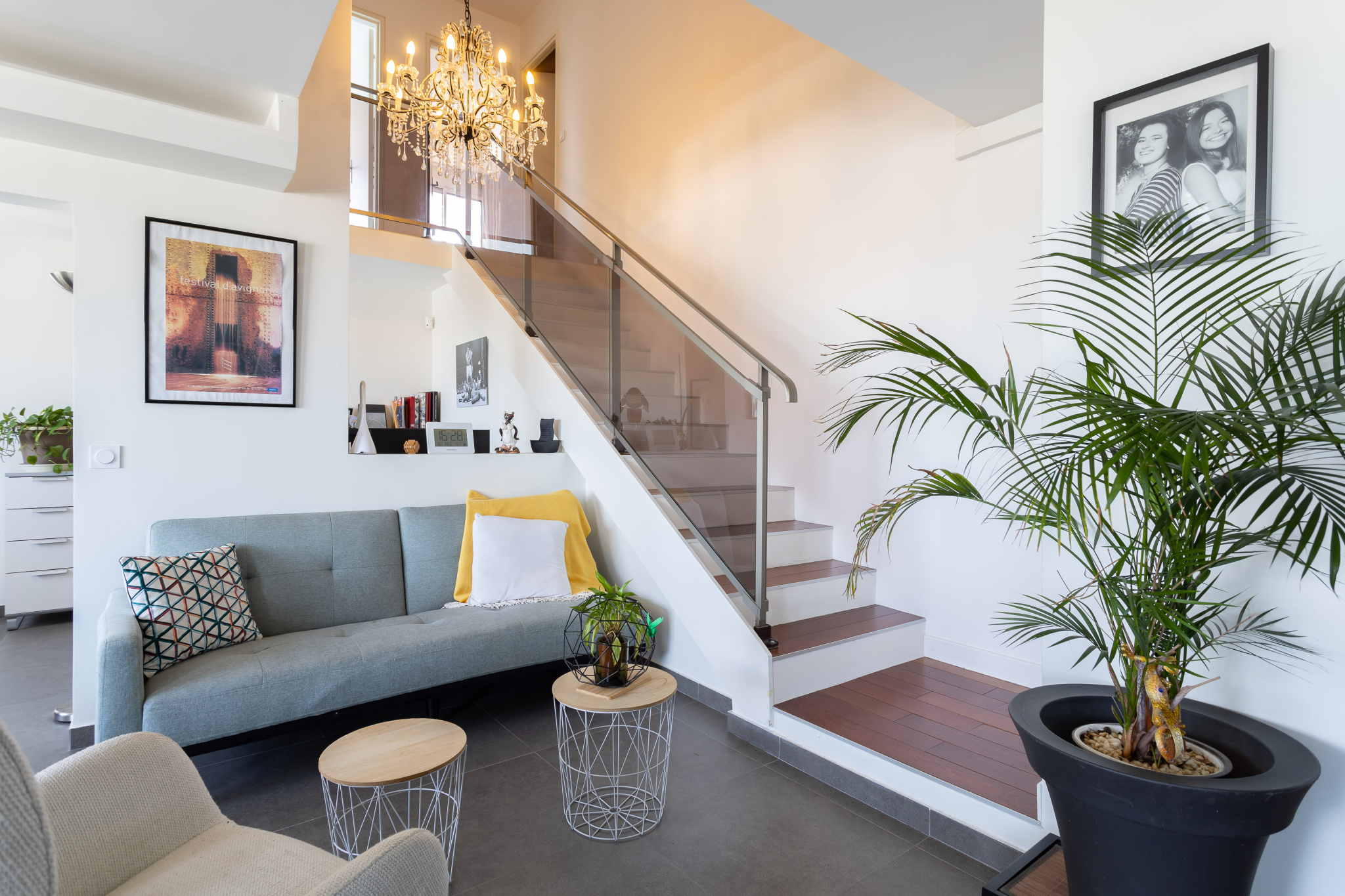 L'appartement est composé au premier niveau d'un triple séjour exposé Sud, une chambre, une cuisine aménagée et équipée, une entrée avec rangements et toilettes d'invités.