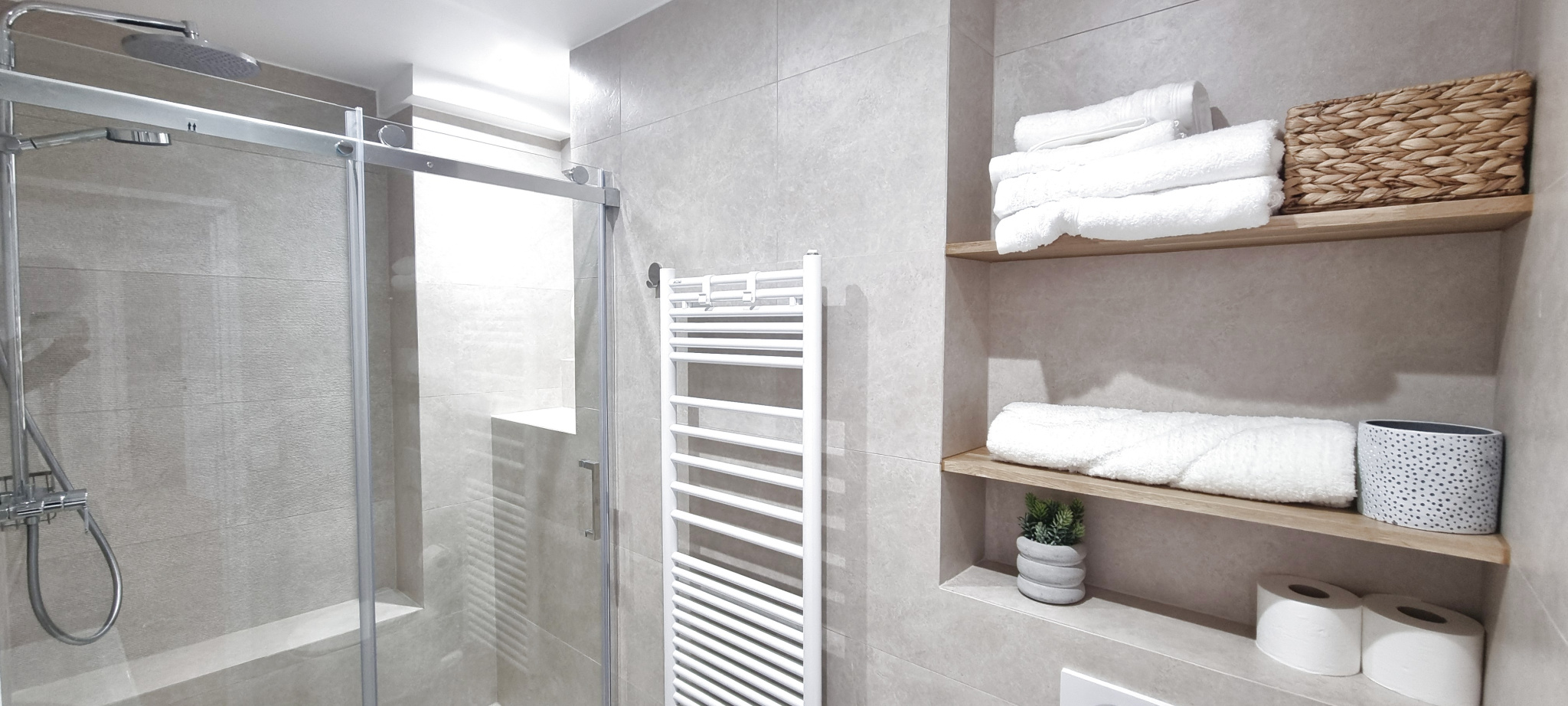 Il se compose d’une entrée avec dressing, d’un séjour, d’une grande cuisine dinatoire semi-ouverte, d’une chambre, et d’une salle d’eau avec WC.