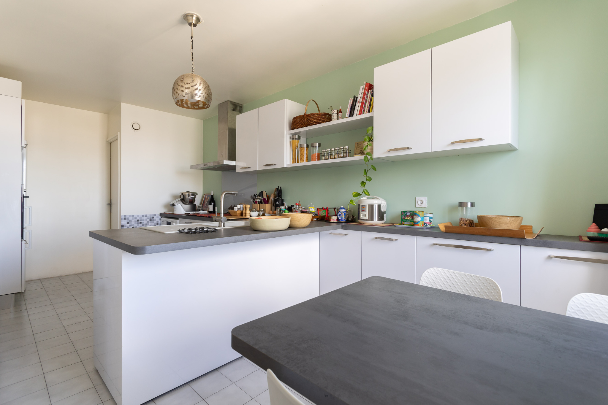 L'appartement est composé au premier niveau d'un triple séjour exposé Sud, une chambre, une cuisine aménagée et équipée, une entrée avec rangements et toilettes d'invités.