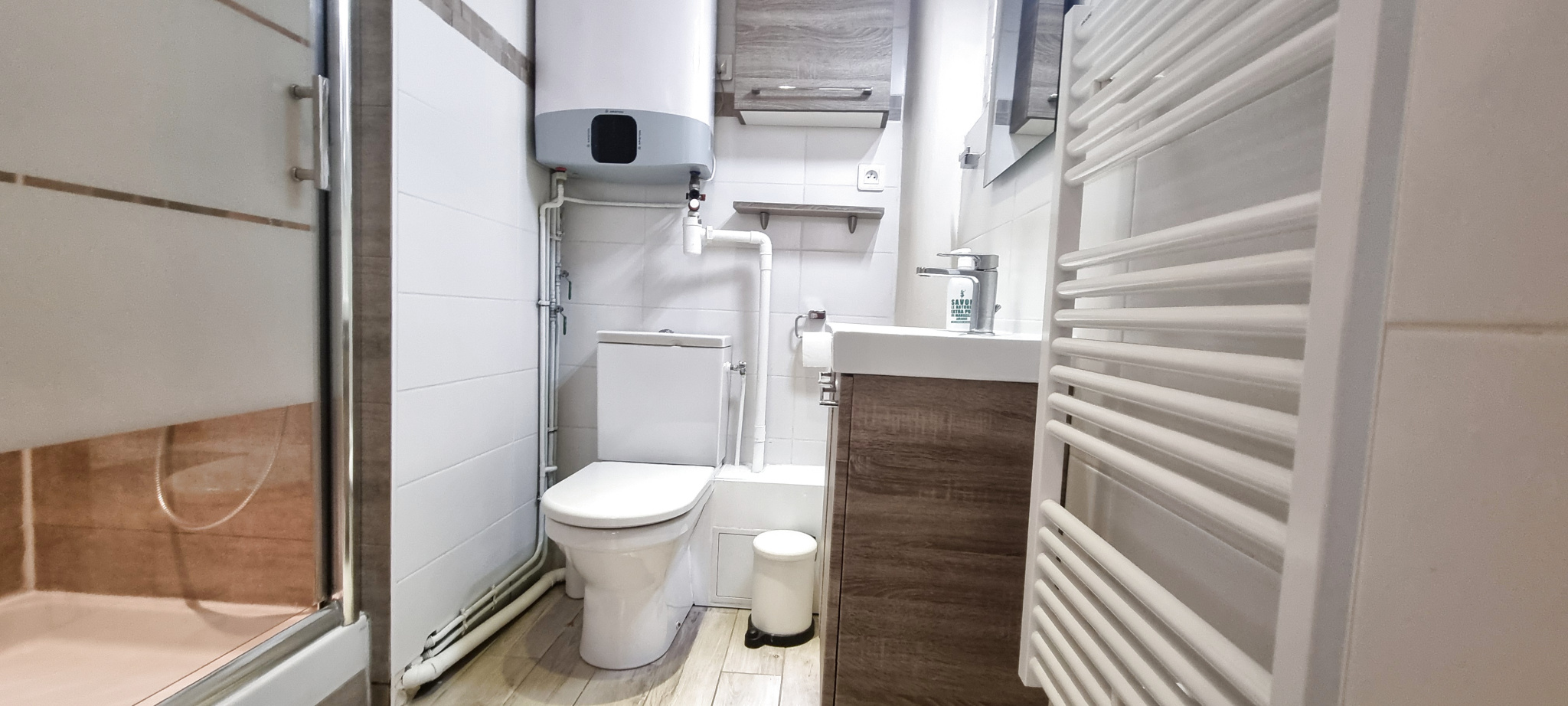 Il se compose d’une entrée, d’un séjour lumineux, de 2 chambres, d’une cuisine séparée ainsi que d’une salle d’eau avec WC.
